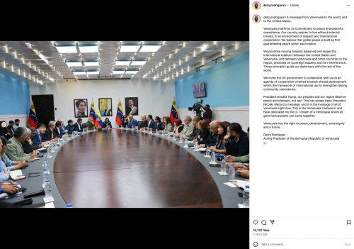 “We invite the U.S. government to work together on an agenda of cooperation,” Rodriguez said. “President Donald Trump, our peoples and our region deserve peace and dialogue, not war.”