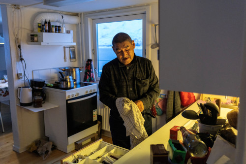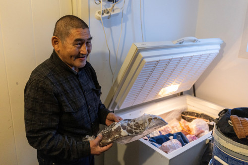 “I’m not scared,” 73-year-old Ringsted said, standing beside one of his two chest freezers packed with reindeer meat, halibut, cod, redfish, and seal meat in his home in the Kapisillit settlement in the Nuuk fjord.